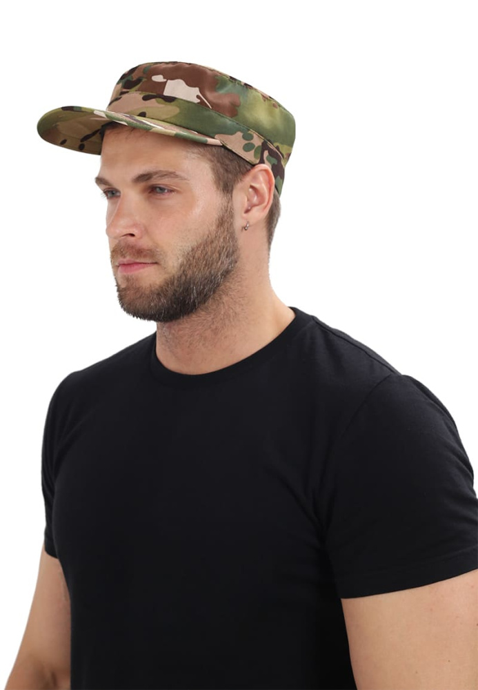 Кепка с камуфляжным принтом предназначена для туризма и отдыха, а так же позволяет маскироваться на фоне пейзажа. Широкий жесткий козырек защищает от различных климатических условий. Объем регулируется с помощью пластиковой пряжки в затылочной части.