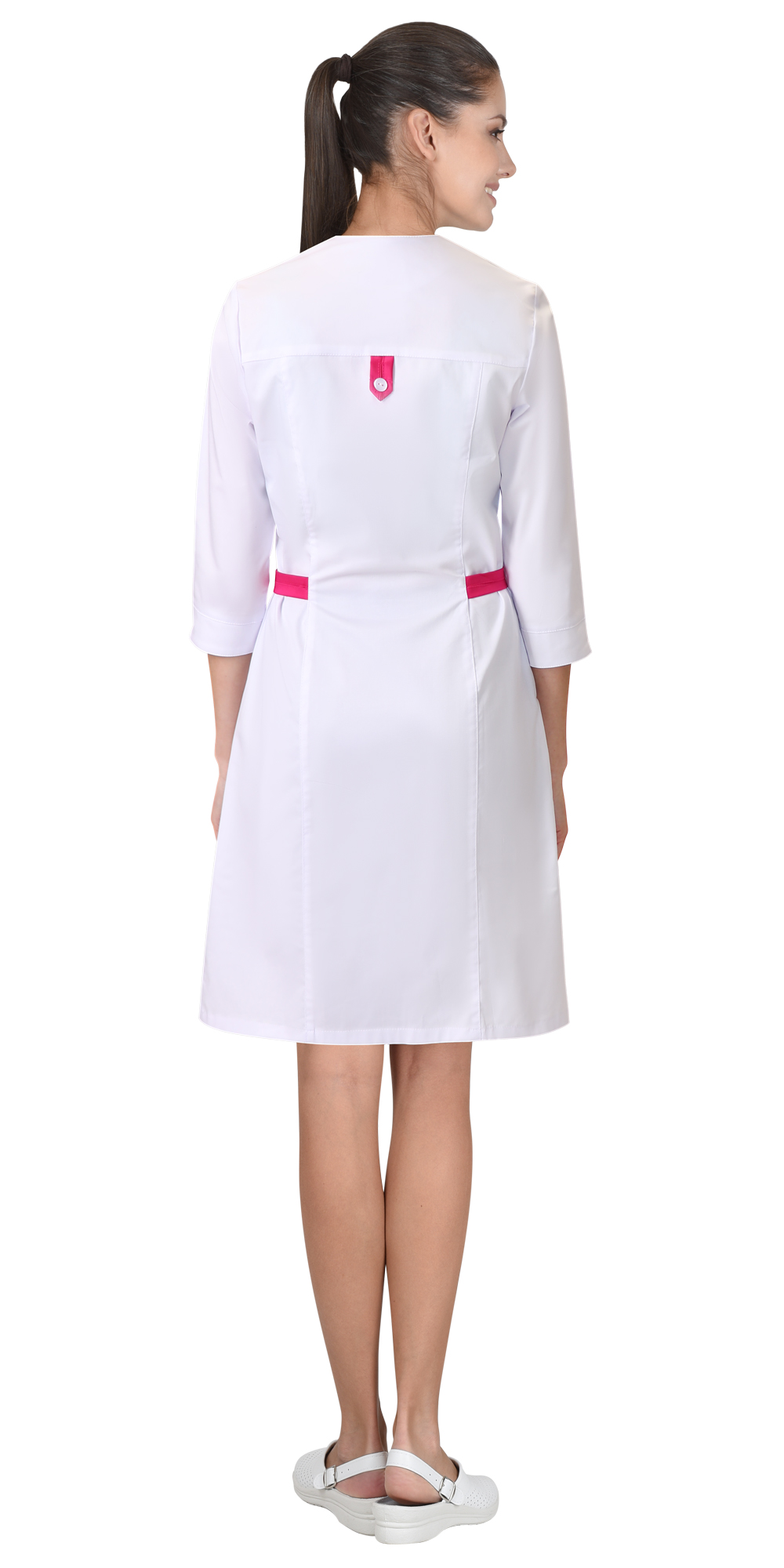 Халат "БРАЙТЛИ" женский белый с фуксией, тк.Твил стрейч (ЧЗ)