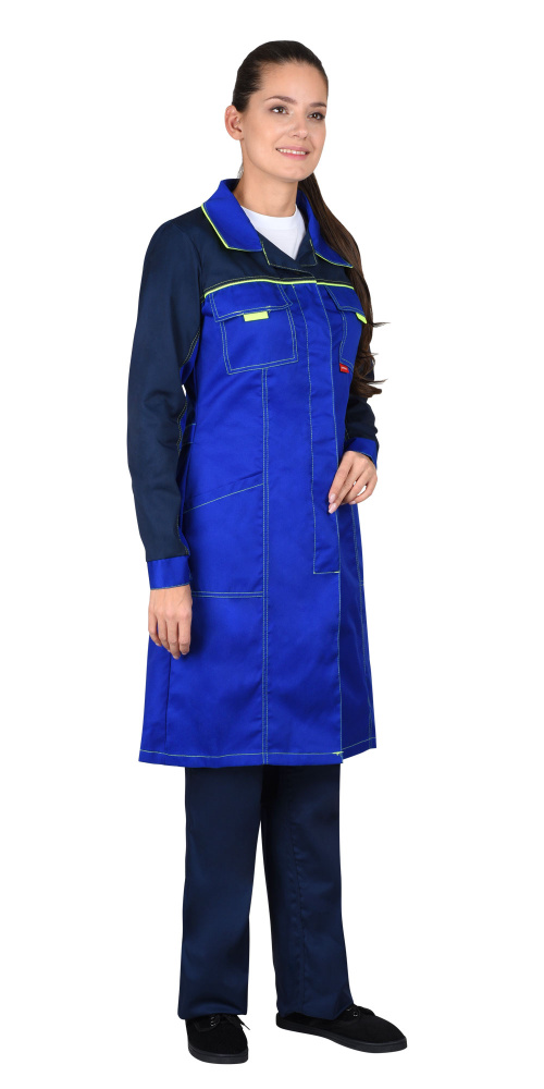Халат "Ирина" женский васильковый с синим и лимонным кантом (ЧЗ) ( 80-84/158-164)