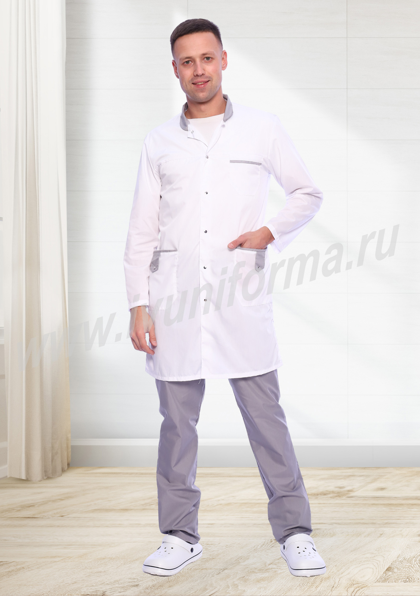 Халат медицинский мужской "Флойд" белый с серым ( 88-92)