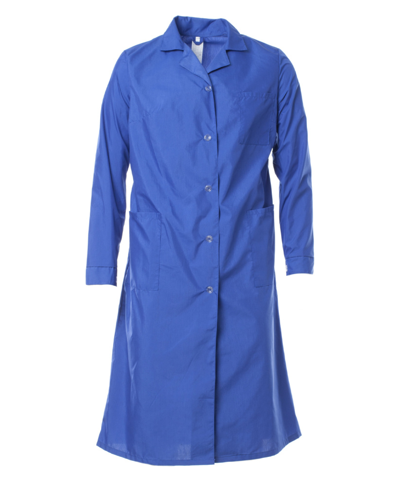 Халат Вероника изготовлен в соответствии с ГОСТ. Центральная застежка изделия – пуговицы. На модели расположены боковые накладные карманы для хранения мелочей. На спинке хлястик на пуговицах для посадки. Халат изготовлен из высококачественного материала, который легко стирается и сохраняет свою форму даже после многократных стирок. В нем вы будете чувствовать себя комфортно в течение всего рабочего дня. Изделия различаются по размеру и цвету (сейчас доступен только синий цвет), чтобы каждый работник выглядел индивидуально. Халат "ВЕРОНИКА" - это идеальное решение для профессиональных работников, которые ищут комфортную и удобную форму для своей работы. Изделие подходит для медицинского персонала, парикмахеров, мастеров маникюра, работников сферы HORECA и других профессиональные работников.