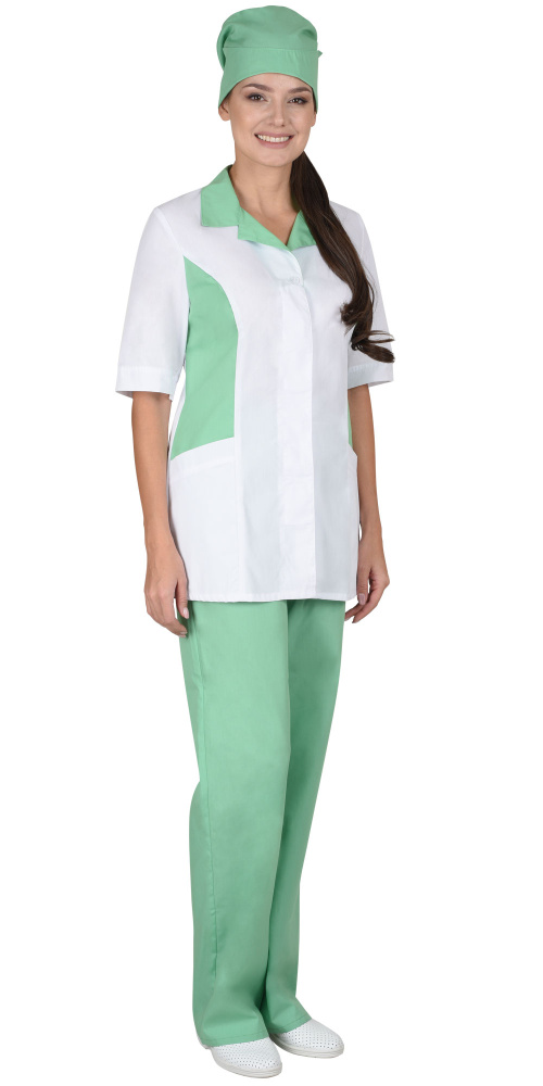 Костюм "Флоренция" женский: куртка, брюки, колпак белый с салатовым  (ЧЗ)