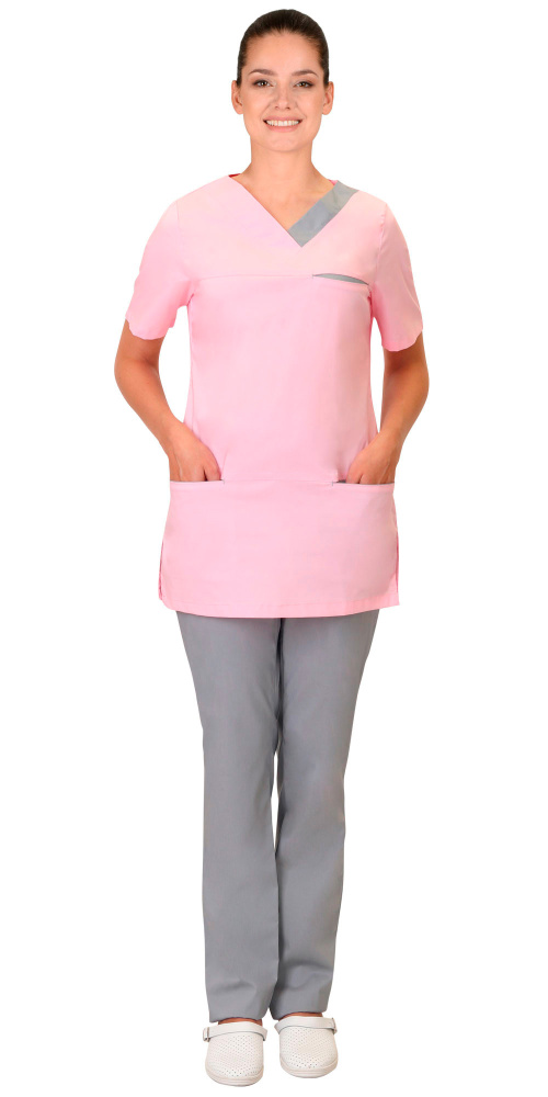 Костюм "КЭТРИН" женский: блуза, брюки, розовый с серым (ЧЗ) ( 88-92/158-164)