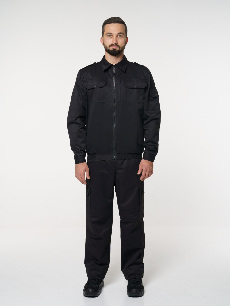 Костюм охранника мужской №106 (охранник) куртка/брюки, черный, ткань Твил (ЧЗ) ( 96-100/170-176)