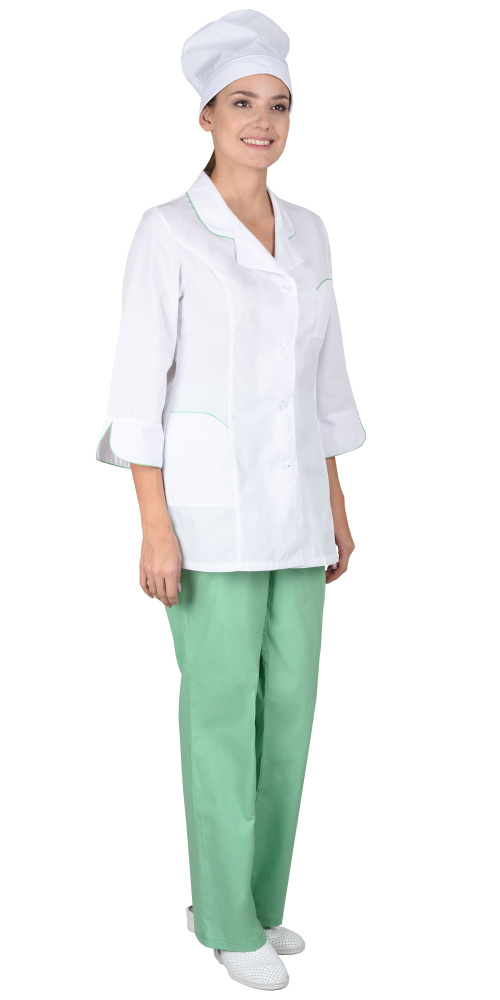 Костюм "Жасмин" женский: куртка, брюки, колпак белый с салатовым (ЧЗ) ( 88-92/170-176)