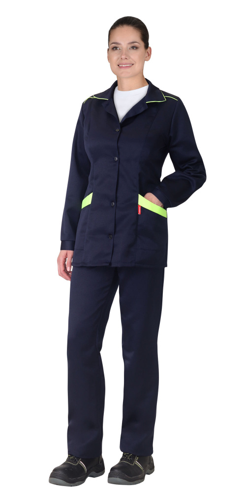 Костюм "ЗОЛУШКА" женский: куртка, брюки синий с лимонным кантом (ЧЗ) распродажа ( 88-92/170-176)