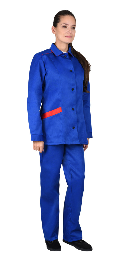 Костюм "ЗОЛУШКА" женский: куртка, брюки васильковый с красным кантом (ЧЗ) ( 96-100/158-164)