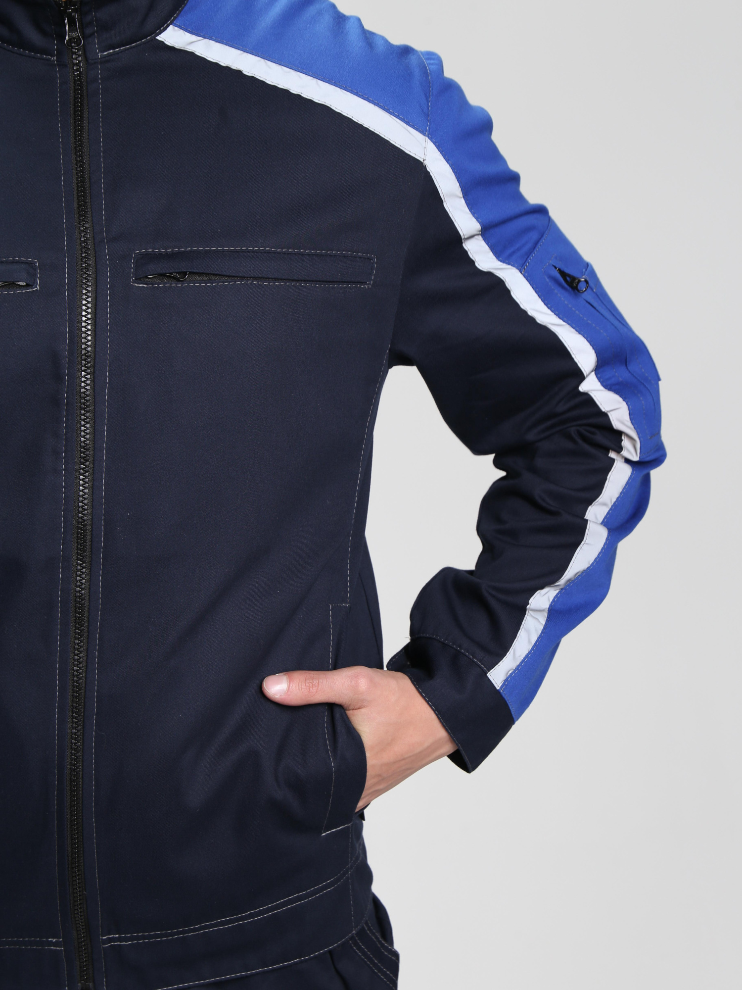 Куртка оснащена множеством карманов, включая прорезной карман с молнией на рукаве и специальную петлю под бейдж, что делает её максимально удобной для ежедневного использования.