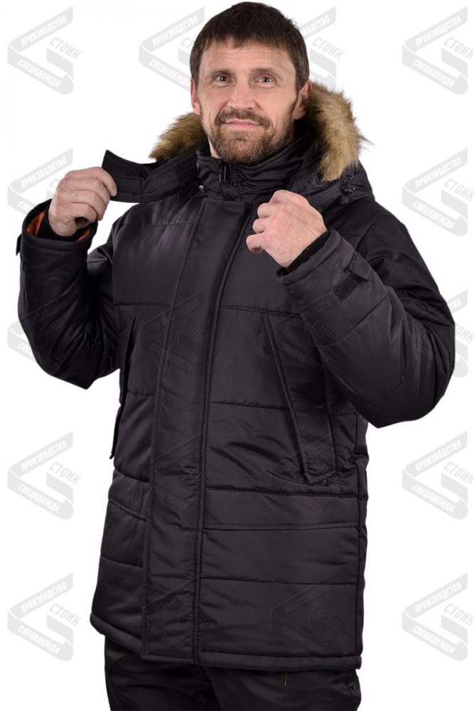 Капюшон съемный, с меховой опушкой, подкладка из флиса. Рукава втачные, с внутренней трикотажной манжетой, низ рукава регулируется патой.