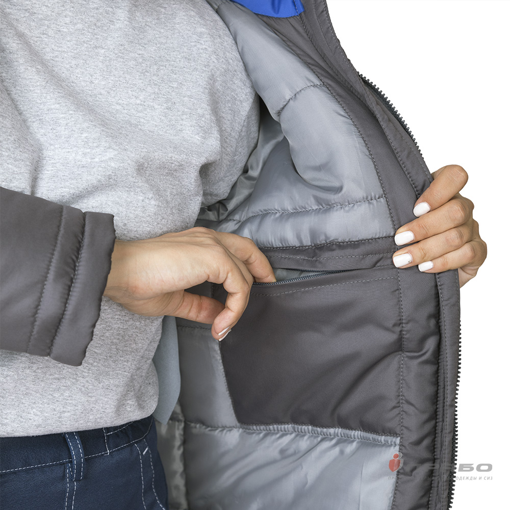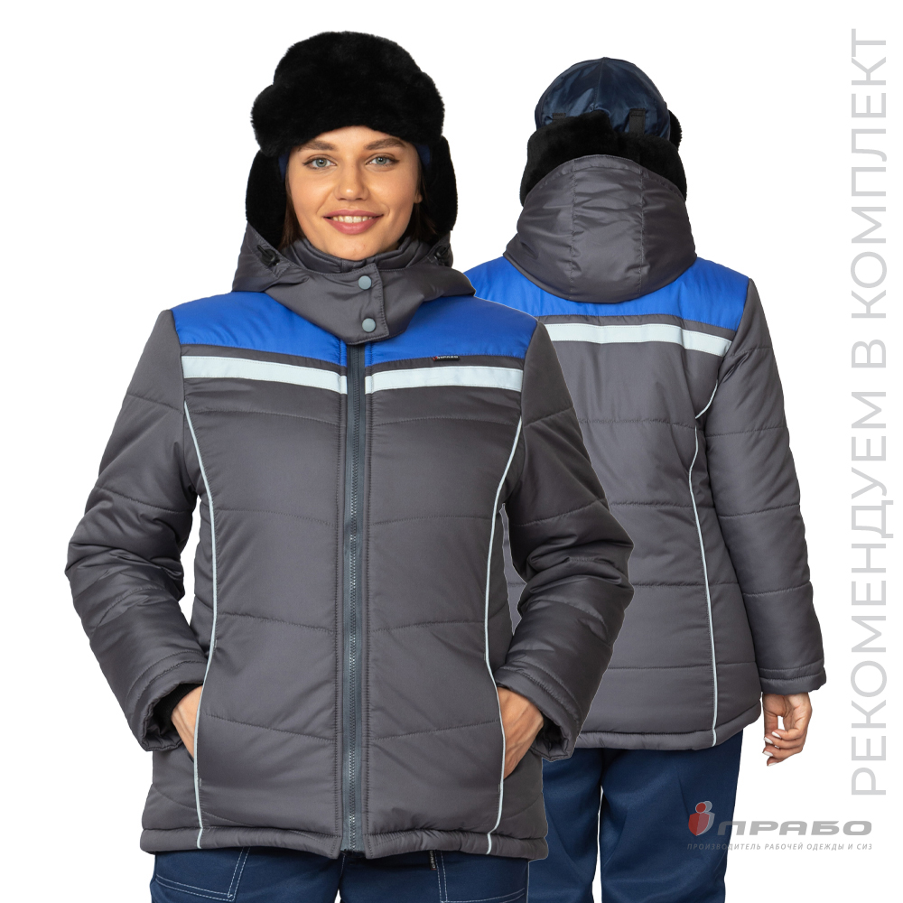 Куртка женская утеплённая "Онега-М" с трехслойным утеплителем тёмно-серая/электрик (ЧЗ) ПРАБО (104-108/158-164)