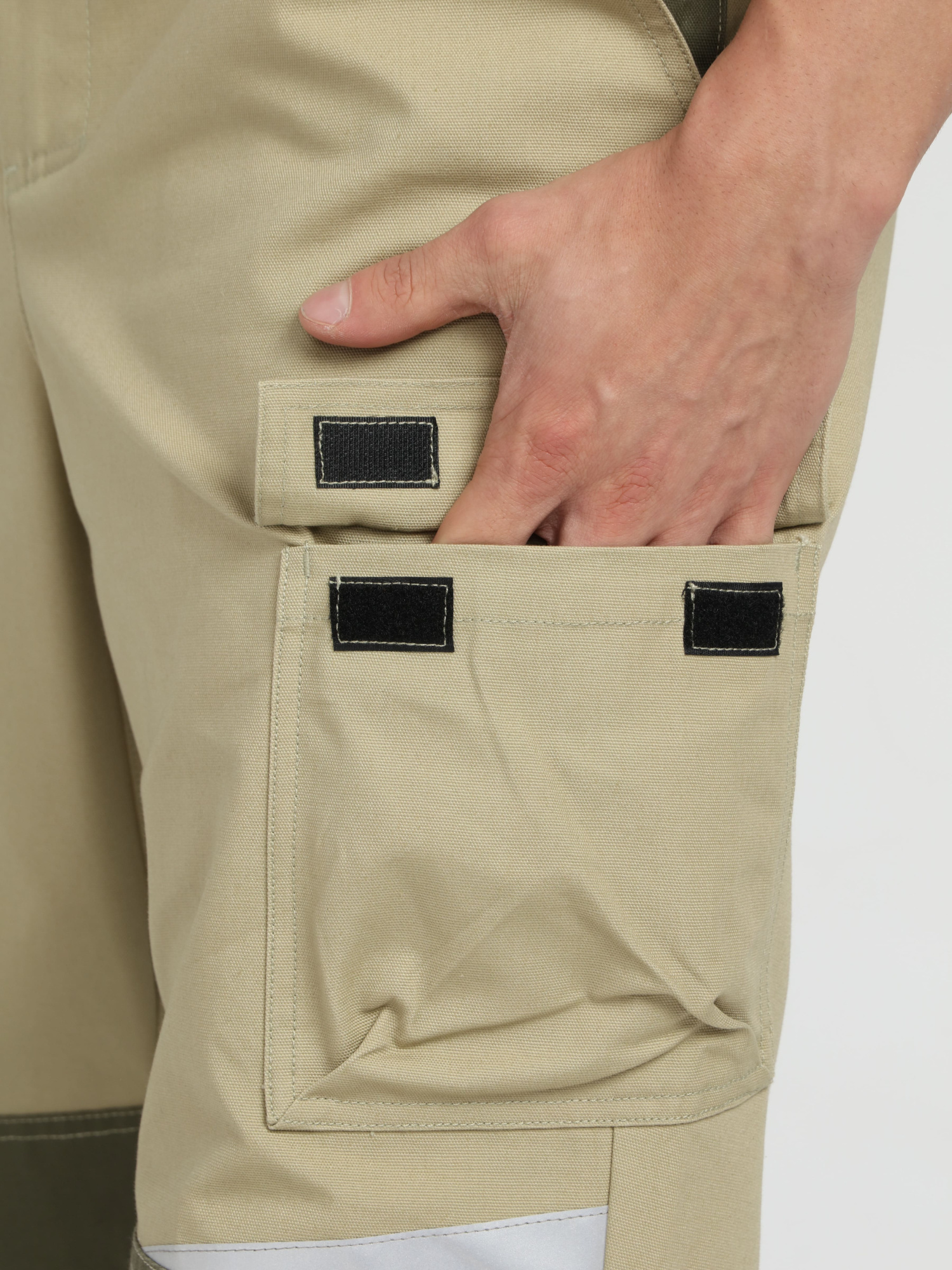в районе бедра слева накладной карман с объемом, закрывающиеся клапаном с двумя участками ленты контакт, справа карман, застегивающийся на тесьму-«молния»