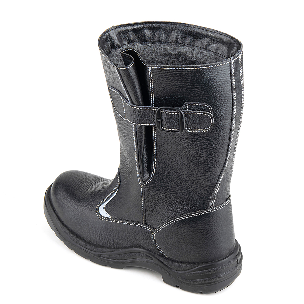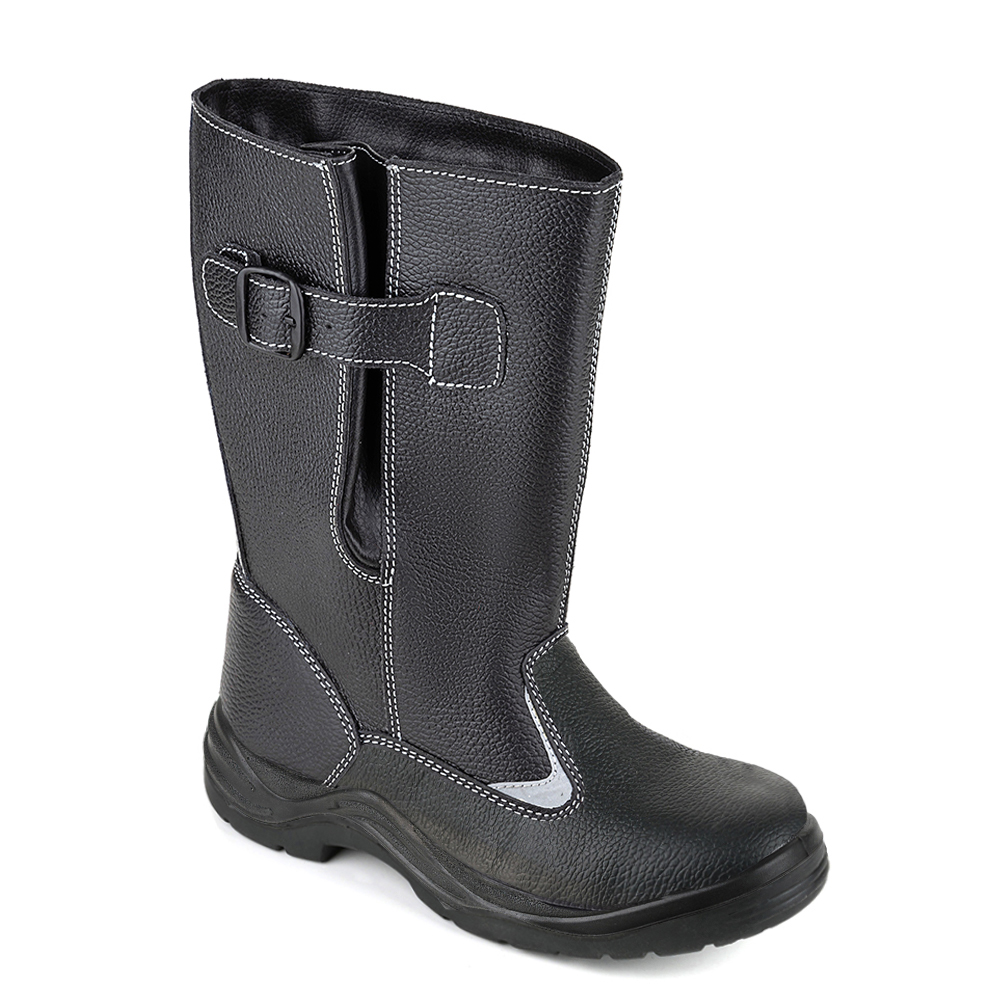Сапоги из натуральной кожи Prosafe серии basic дополнены ремнем с металлической пряжкой для возможности регулировать и комфортно фиксировать ширину голенища. Подкладка и вкладаня стелька изготовлены из шерстяного меха. В модели предусмотрена текстильная съемная стелька. Светоотражающие элементы повышают видимость работников в темное время суток, а также на неосвещенной территории. Подошва - двухслойная, маслобензостойкая, литьевого метода крепления. Верхний слой изготовлен из ПУ с внутренней амортизирующей вставкой в пяточной части подошвы, способной гасить ударные нагрузки при ходьбе. Ходовой слой- износостойкая термостойкая нитрильная резина, способная защитить стопу от кратковременного контакта подошвы с нагретой поверхностью до 300°С. Глубина протектора ходового слоя обеспечивает хорошую сцепляемость с поверхностями и препятствует скольжению за счет рельефа протектора. Композитный подносок обеспечивает защиту пальцев стопы от механических повреждений ударной прочностью до 200Дж